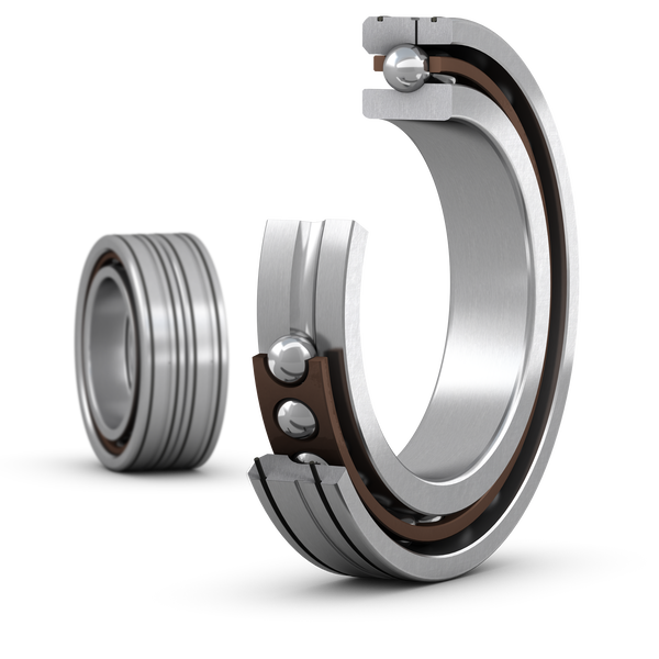 Bu eşleşen iki süper hassas, yüksek hızlı, E tasarımı, tek sıralı eğik bilyalı rulman setleri, çeşitli düzenlemelerde mevcuttur. Eşdeğer SKF B tasarımı yüksek hızlı rulmanlarla karşılaştırıldığında, bunlar biraz daha yüksek hız kapasitesine sahiptir ve daha ağır yükleri barındırabilirler.